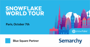 Semarchy will be at the Carrousel du Louvre as a Blue Square Partner for the Snowflake Data Cloud World Tour in Paris. Join us at 2:40 PM in Room Soufflot 2 for our breakout session with our client Elis.
